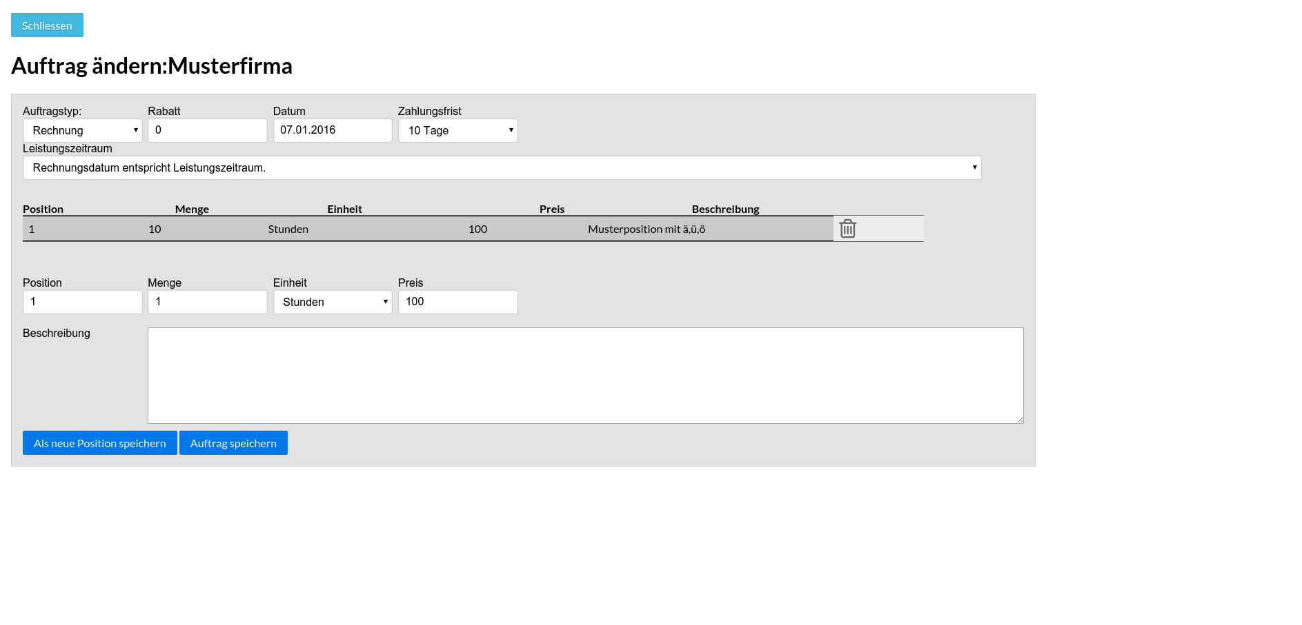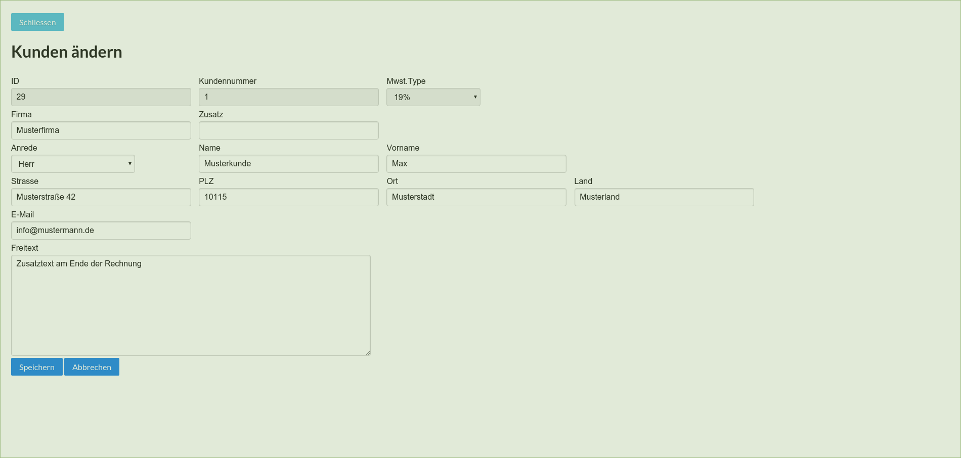 Schön wäre eine Installationsroutine, in der die Firmendaten (Tabelle: settings) eingegeben werden können und dass die Einrichtung der Datenbank-Struktur samt Beispielinhalte und optional die Übernahme einer alten Sicherung übernimmt.